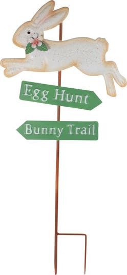 Easter Egg Hunt and Bunny Trail Outdoor Metal Spring Yard Stake - 25.5"