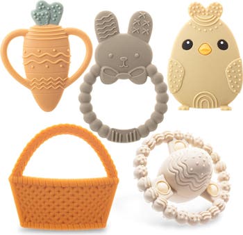 - Complete Easter Teether Collection: Includes bunny, carrot, chicken, rattle egg, and basket teethers.