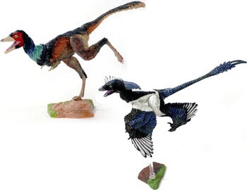 BEASTS OF THE MESOZOIC: EASTERN DINOSAUR 2-PACK - 6" MICRORAPTOR G. AND MONONYKUS O. Each set features 2 highly-detailed collectible raptor figures, each approximately 6″ long with 7 points of articulation and includes two bases, multiple posing rods and attachments, collectible trading card, and unique background display insert. Packaging features red-foil printing and artwork by Shannon Beaumont. DINOSAUR FACTS: Microraptor gui (little thief ) was a small, four-winged bird-like dinosaur from Early Cretaceous Liaoning, China. It is known from numerous well-preserved fossil specimens, providing important evidence about the evolutionary relationship between birds and dinosaurs. Having long pennaceous feathers on the arms, tail and legs, paleontologists speculated that it glided using all four limbs for lift. Later studies suggest that Microraptor was also capable of powered flight. Mononykus olecranus (one claw ) was a theropod dinosaur from Late Cretaceous Mongolia. This nocturnal hunter had long, skinny legs and probably ran at high speeds in the open flood plain habitat. It’s small skull and pointy snout housed small sharp teeth, likely for eating insects and small lizards and mammals. CREATIVE BEAST STUDIO: Discover captivating and scientifically accurate dinosaur models. Our extensive collection is perfect for dinosaur enthusiasts like yourself seeking authentic and life-like collectibles. Dinosaur action figure collectibles with maximum articulation is something that we take pride in creating. We invite you to immerse yourself in a forgotten world of beauty and strong organic forms. The Beasts of the Mesozoic toy line began as a Kickstarter campaign in 2016 for the Raptor Series. There have been two more successfully funded Kickstarter campaigns for BotM since then with the Ceratopsian Series (2019) and Tyrannosaur Series (2021).