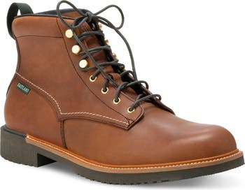 Chunky, rounded hardware on the eyelets elevates this derby-style boot that's situated on a cushy insole and a hardy, slip-resistant rubber sole.