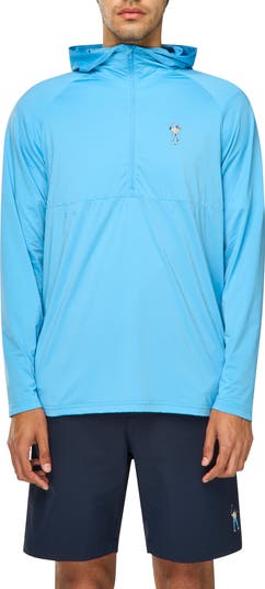 Roomy raglan sleeve won't impede your swing in this trim and stretchy hoodie finished with tonal branding.