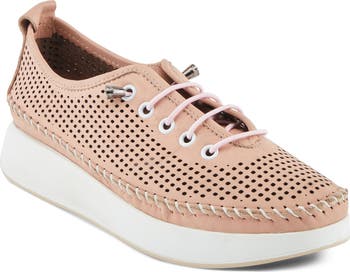 A perforated leather upper ensures airflow in this easy-on sneaker outfitted with stretchy laces and a cushioned insole for daylong comfort.