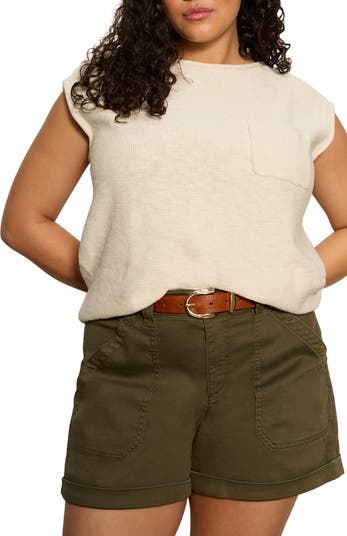 Cut from a sweater-inspired knit, this easy T-shirt has rolled edges that further the carefree vibe.