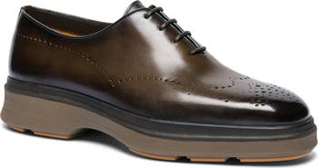Subtle broguing refines the look of this classic oxford fashioned from burnished Italian leather.