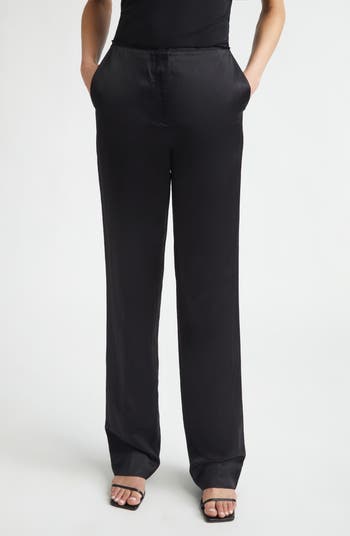 Nonchalant pants with a satin handfeel and a touch of linen are cut to a clean, straight silhouette with a delicate raw edge at the waist. These elegant pants reflect the crisp restraint of Scandinavian minimalism Totême is known for.