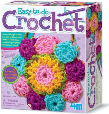 4M: EASY TO DO CROCHET - Introduce children to the basics of knitting and crochet with the Knitting/Easy-To-Do Crochet Kit! This fun and educational kit provides endless hours of entertainment and creativity, complete with all necessary materials, including vibrant yarn and durable crochet hooks. Young crafters can create a variety of projects, guided by detailed instructions that make the crafting process easy and enjoyable. What sets this kit apart is the inclusion of illustrations for both right and left-handed users, ensuring that all children can confidently participate. This hands-on project enhances creativity while teaching essential skills in knitting and crochet, making it perfect for school projects, arts and crafts, or simply as a fun activity at home. Inspire a love for crafting with this innovative kit, which helps children develop fine motor skills as they explore the world of knitting and crochet. The kit contains enough materials to make a mini bag, a colorful placemat, and several uniquely designed coasters, making it a fantastic way to combine fun and learning—an excellent gift for young crafters! INCLUDES: Contains 2 crochet hooks, 1 plastic needle, different colored yarns and full color instructions. Illustrations for both right and left handed users. Contents are sufficient for making a mini bag (14 x 14cm), a colorful place mat (18 x 13cm) and a few different designed coasters (7 x 7cm).