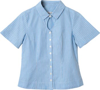 Ebba Pinstripe Keyhole Organic Cotton Button-Up Shirt