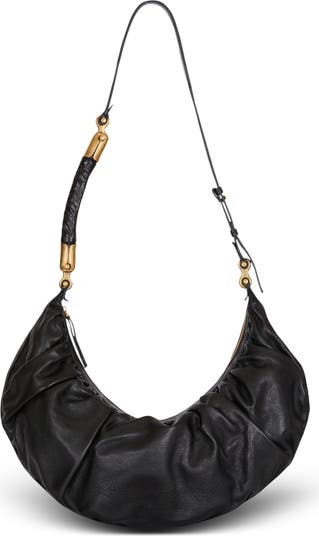 Ebene Hobo bag in calfskin leather Carry in the hand, on the shoulder or across the body Adjustable strap Leather-covered ebony wood handle Zip fastening with Balmain logo Gold metallic hardware Soft slouchy silhouette Dimensions: 24 x 48 x 5��cm Main material: 100% calfskin Made in Italy Item: GM1BU277LOLP