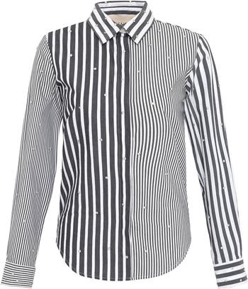 Playful yet polished, the Echo Mix Stripe Pearly Shirt features vibrant multi-stripe patterns and hand-applied embellishments of pearls, gold, and gunmetal beads. Made from a cotton-poly blend, this shirt offers a chic, standout style.