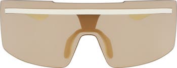 Sporty shield sunglasses deliver easy-wear comfort with a lightweight metal frame, soft nose pads and rubber-tipped temples.