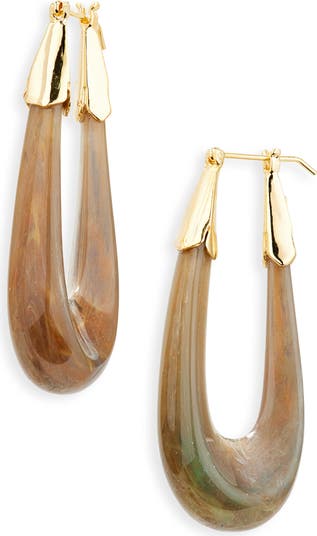 Glossy acetate forms the drops on these smashing earrings framed by 24-karat gold plating.