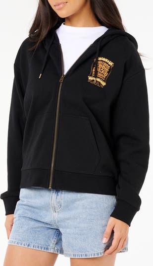Poster art graphics by artist Jack Soren make their way to this cozy hoodie that celebrates the competition and culture of the iconic surfing event.