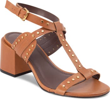 Polished studs highlight the T-strap silhouette of a block-heel sandal that's an instant everyday favorite.
