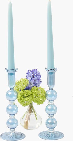 Our pair of Blue Eden Candle Holders come in a refreshing blue hue and are perfect for elevating your home. Carefully crafted in blue glass with a sphere design, these pieces are sure to be a favourite of yours.