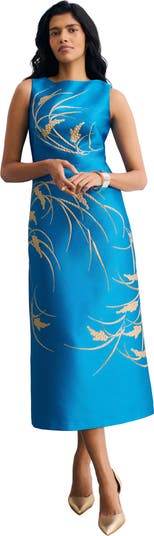 Crafted from beautiful Italian fabric, the botanical jacquard that details the Eden dress has been skilfully placed for the most flattering finish. As for its silhouette, its slash neckline and column skirt are truly timeless.