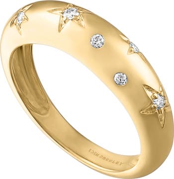 Celestial cutouts are filled with twinkling diamonds in this 14-karat gold dome ring that mimics the night sky.