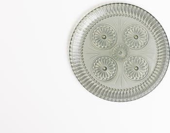A glass plate, but make it whimsy and a little vintage. That is precisely our intricately detailed sage tinted soda-lime glass accent plate