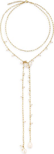 Delicate faux-pearl baubles define a shaker necklace done in a high-shine finish and shaped into a timeless 'Y' silhouette.