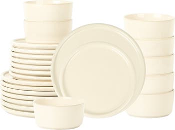 From relaxed, everyday settings to sleek, formal tablescapes, the Eden Dinnerware Set embodies the essence of chic, contemporary design. Strikingly classic and thoughtfully crafted, each piece of the Eden collection was designed with a refined lipped edge, as well as a glossy finish, for an added touch of tasteful simplicity. It's the perfect choice for those who appreciate understated elegance and classic beauty in their dinnerware"”like you! THIS SET INCLUDES: Round 10.75" dinner plates Round 8.6" salad plates Round 5.6" cereal bowls
