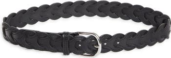 Intricately intersecting strips of Italian leather comprise a sculptural belt that's traced with topstitching.