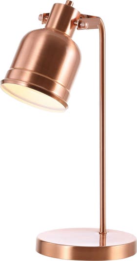 Copper, a stalwart of kitchen decor, is the foundation of this attractive table lamp which is designed for the other workhorse of that room -- the kitchen desk. With a swinging shade and in-line switch, the alchemy of function and form make this piece a must-have for any industrial workspace. At 18" high, the scale is ideal for any size desk, though the finish makes it eye catching on any surface.