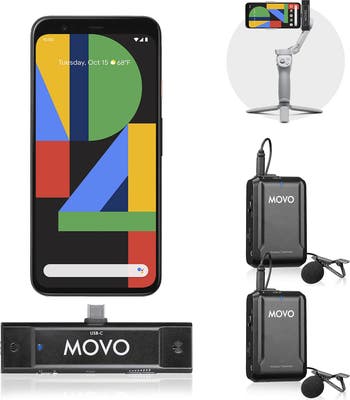 The Movo EDGE-UC-DUO is a wireless lavalier microphone system designed specifically for use with Android smartphones and iPad Pro. The wireless receiver features a battery-free design that draws power directly from your smartphone via the USB Type-C port, eliminating the need for bulky power packs. The omnidirectional lav mics come with an attached shirt clip and windscreen, and the transmitters feature a belt clip for easy setup.