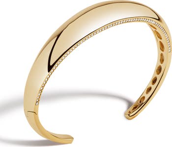 A row of pavé cubic zirconia highlight the tapered, domed design of this hinged cuff bracelet that's easy to stack and make a statement with.