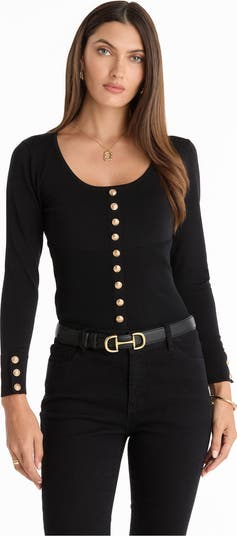 The Edie Knit Top is the ultimate elegant top, crafted from ultra-soft, lightweight knit fabric. Its mid-length silhouette features luxe buttons along the front and sleeves, providing subtle detail and effortless layering. Perfect for sophisticated style with a touch of comfort, this top balances delicate texture with timeless appeal.