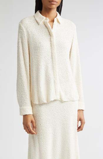 Quiet luxury finds its voice in this button-up from the NYC label's fall '25 collection, where simplicity is elevated by the subtle intrigue of tantalizingly textured fabric. The hidden button placket and precise point collar embody Nellie Partow's refined approach to modern tailoring.