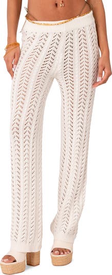 Lounge by the water feeling confident in these open-knit cover-up pants with a ribbed waistband.