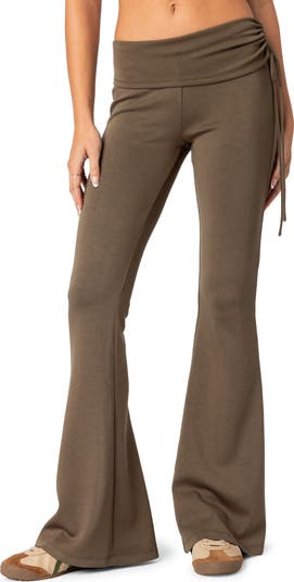 Slip into maximum comfort without compromising on style in superstretchy leggings designed with a ruched fold-over waistband and Y2K-inspired flare legs.