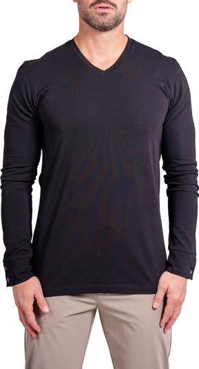 Made from stretch-knit cotton in a physique-hugging fit, this long-sleeve T-shirt features woven trim at the cuffs and side vents for a subtle pop of contrast.