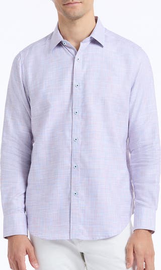 A subtle plaid pattern and contrast trim at the cuffs highlight this button-up shirt cut from breathable cotton so you move from day to evening in comfortable style.