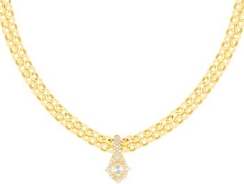 Woman wearing designer jewelry.