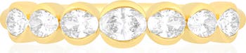Opulent oval diamonds line up on a gleaming 14-karat gold ring that will illuminate up any look, day or night.