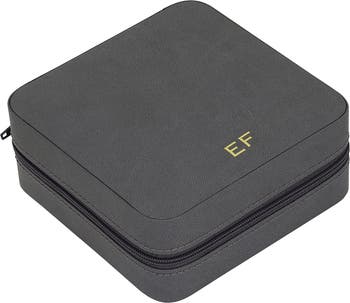 Easily organize your jewelry on the go with this pebbled leather travel pouch designed to store all your favorite earrings, rings, bracelets and necklaces.