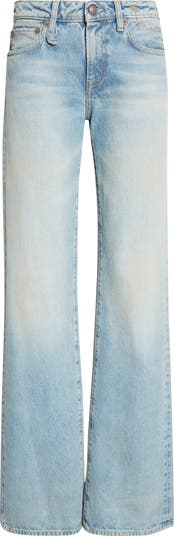 The label's rebellious edge is toned down a touch for more versatile appeal on bootcut jeans cut from lightly distressed nonstretch denim.