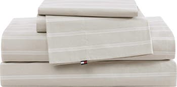Trios of stripes bring smart sophistication to this sheet set made from soft, breathable cotton percale that's woven to last for years of restful nights. Cool and smooth to the touch, it's ideal for warm sleepers.