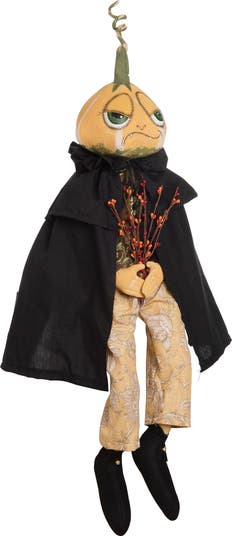 Efren Pumpkin Head and his unsettling fanged grimace brings a truly spooky touch to your Halloween. As Efren sweeps down the lane with his cloak billowing behind him, trick-or-treaters seem to shrink into the shadows. Little do they know, all Efren wants to do is bring a bundle of flowers to his favorite pumpkin girl! Display Efren Pumpkin Head with more Gathered Traditions soft figures and watch your collection come to life. Size: 17 inches high x 8 inches wide x 6 inches deep Each soft figure displays a hand-painted face, making each doll uniquely yours This soft figure is not a toy, not suitable for children under 14 years old.
