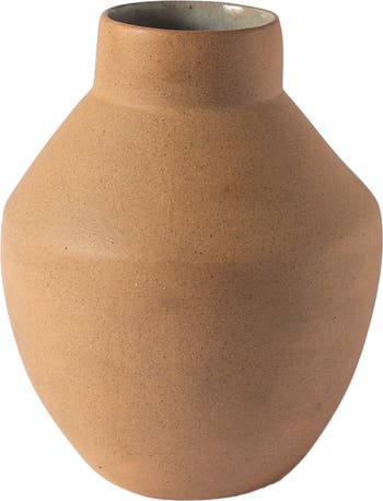 Handcrafted ceramic vase made with mixture of local clays. Wheelthrown and glazed only in the inside. The final earth tones and textures are the result of the different combination of clays exposed to the heat of the kiln fire.