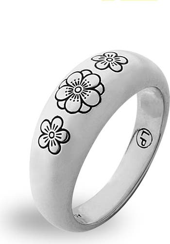 I am graceful... The Ehwa flower (오얏꽃), a symbol of the Korean Empire, inspires the Ehwa Floral Dome Ring. Engraved with three flowers in a soft dome, it honors Grace’s family lineage and sense of belonging. Wear solo or stacked—the double-band design pays tribute to her late grandmother’s strength, love, and positivity.