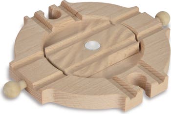 This great eight-way turntable for the Eichhorn wooden railway can be incorporated into railway layouts to allow trains to switch tracks. The small piece of track in the center can be turned so that trains can go in any of the four directions. The Eichhorn railway is manufactured exclusively from FSC 100 percent wood from sustainably managed forests.