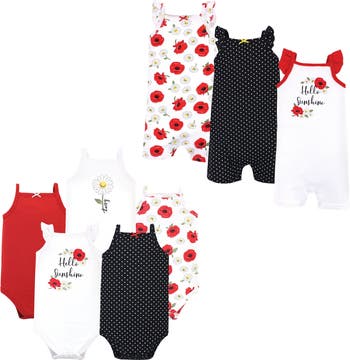 Hudson Baby Eight-Piece Wardrobe Essentials Bodysuits & Rompers, Alternate, color, Poppy Daisy