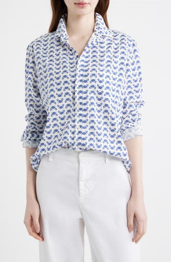 Made from Italian cotton in a fun crab pattern, this button-up shirt has a relaxed fit that exudes casual California effortlessness. It's easy to layer over other pieces in your closet, and it features Eileen's signature bust-flattering button placement for a confident fit.