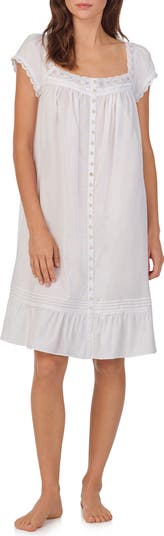 Pintuck pleats, lacy trim and akoya shell buttons bring timeless romance to an airy cotton nightgown finished with a flounce hem.
