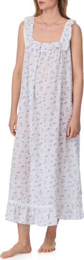 Fuzzy Swiss dots and lace trim bring dreamy texture to this flowy cotton nightgown shaped by a ruffled overlay and vertical pintucking details.