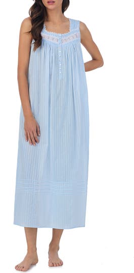 This striped nightgown with lace trim around the neck is made from lightweight and breathable cotton to help you get a restful night of sleep.