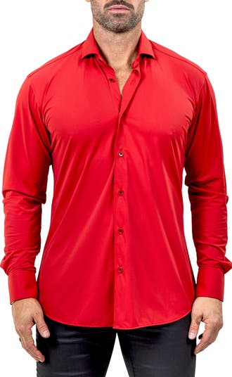 Take your everyday look to the next level in this sport shirt made from a stretchy woven in a fit that's right in between trim and regular.