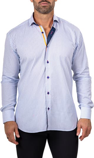 Maceoo Eins Marthy Contemporary Fit Cotton Button-Up Shirt, Main, color, Blue