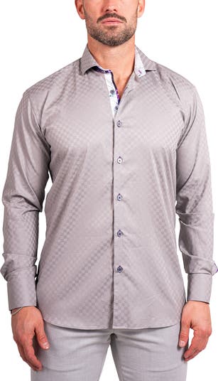 Einstein Ascension0090 Grey Tonal Checkerboard Cotton Button-Up Shirt